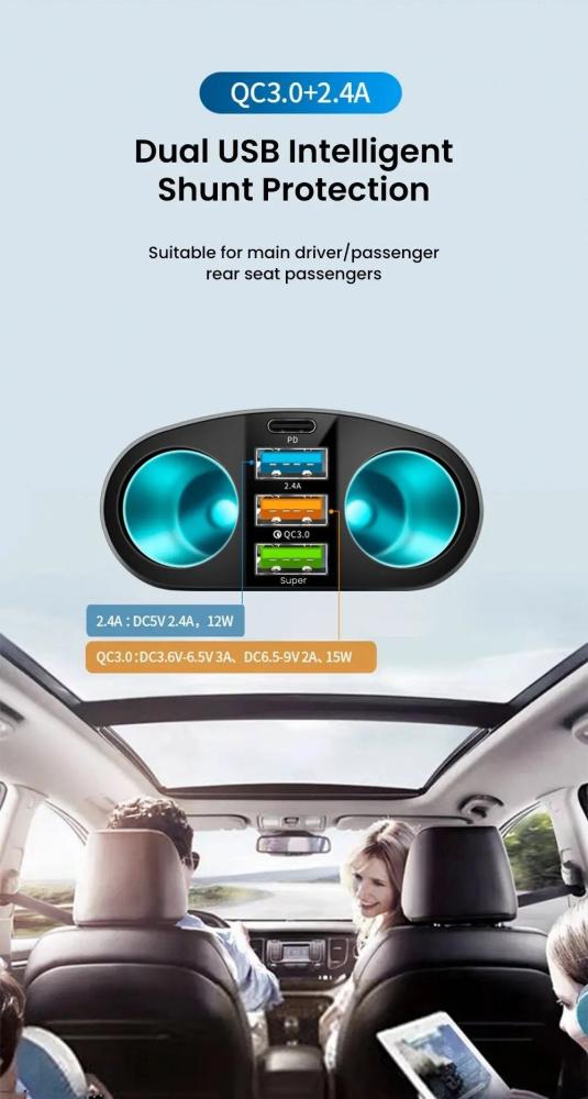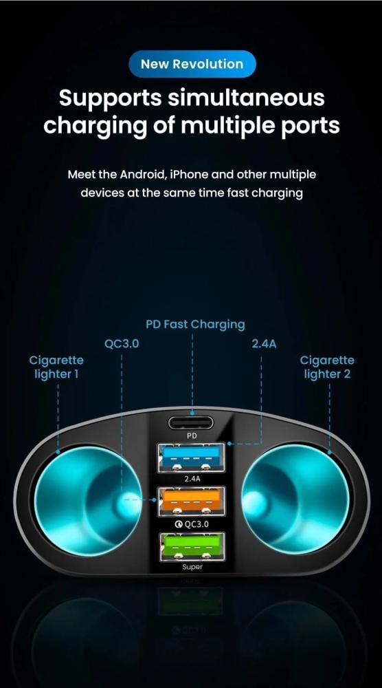 - يوفّر منفذ ولاعة إضافي لتشغيل أي جهاز تحتاجه بالطريق