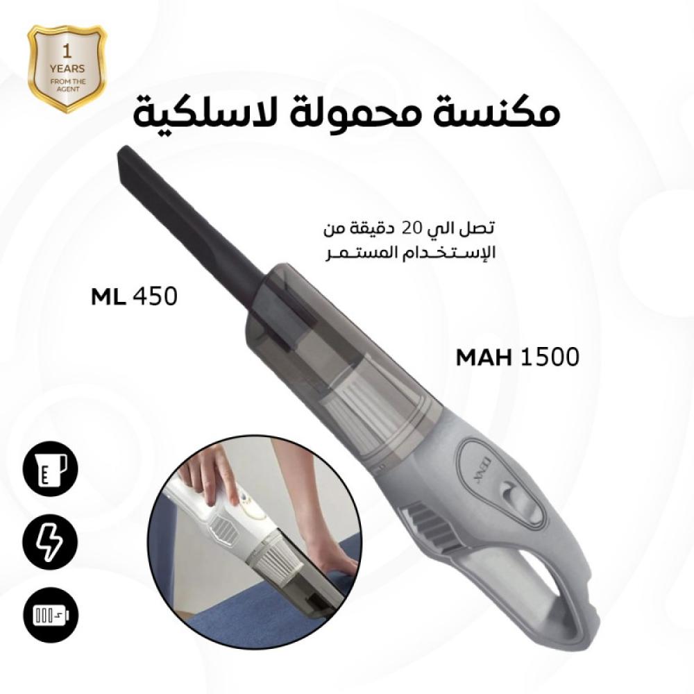 مكنسه كهربائيه لاسلكيه بقدرة 1500 واط لتنظيف السيارة ونفخ الإطارات، تعمل بجهد 12 فولت مزودة بكشاف إضاءة قوي، خفيفة الوزن 450 جرام بتصميم مدمج